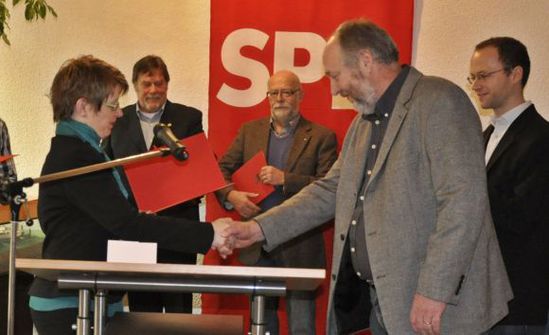 Aus dem Ortsverein Montabaur wurde Jürgen Willerhausen und Bernd Lohmüller für ihre 40-jährige Mitgliedschaft in der SPD mit Urkunde und silberner Nadel gedankt.